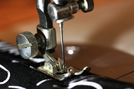 Sewing machine, close-up of a needle and black fabric. High quality photo