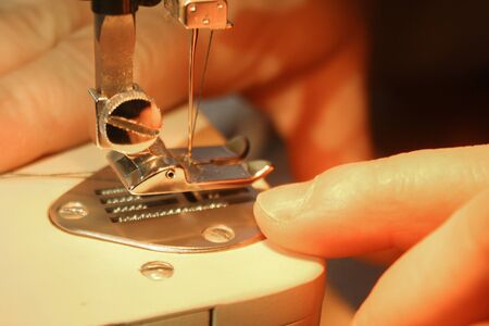 Sewing machine and item of clothing. Needle and thread of sewing machine