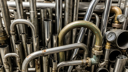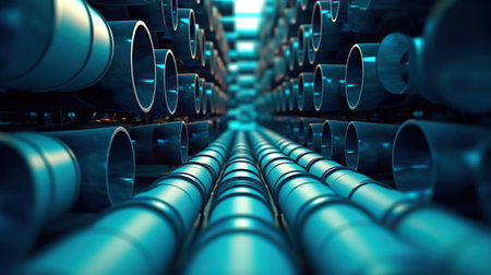 industrial metal pipes. AI generative. illustration in photorealistic style.