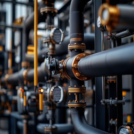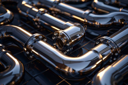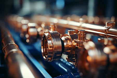 Modern Piping System Polished Metal, Intricate Industrial Infrastructure and Engineering Detail