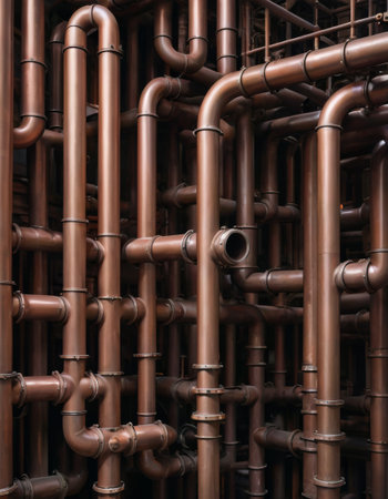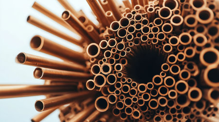 This captivating image showcases a complex arrangement of copper tubes, creating a striking visual effect through depth and texture that invites intrigue.