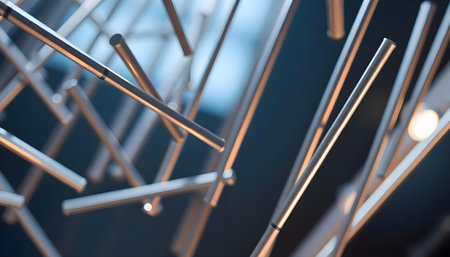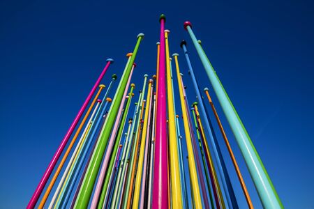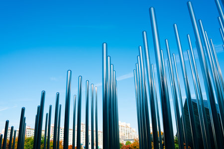 Metal texture art pipes in the park with blue sky