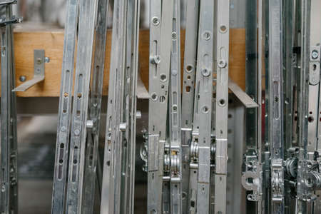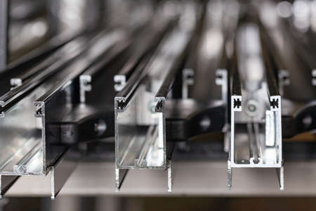 Production and manufacture of window profiles. Plastic and metal profiles close-up.Window manufacturing factory
