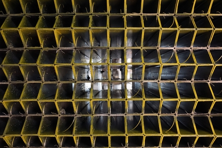 Background of concrete and metal floors of a large bridge in the form of square cells