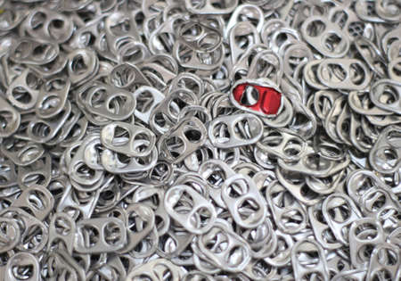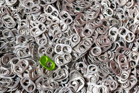 A pile of Aluminum Hand Pull Tab Good Idea for Environmental saving,Donations for Prosthetic leg,Ring pull tab Aluminum Pop Tops of cans for background