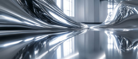 Shiny metallic surface with smooth waves reflecting light in an abstract design