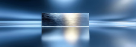 A polished metal surface reflecting light in a beautifully abstract blue environment