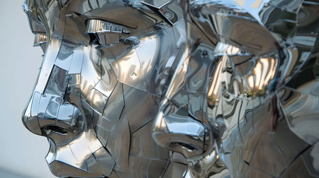 This composition showcases a series of interlocking geometric forms that display a captivating metallic texture. The intricate shapes catch ambient light, creating a dynamic interplay of reflections and shadows. The overall effect evokes a sense of depth and dimension, drawing the viewer into a visually stimulating arrangement.