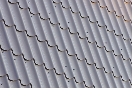 Slate roof as background. Metal tile roof surface, background, texture, abstract