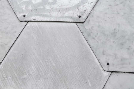 Close-up of lead sheeting on church roof with strong diagonal lines