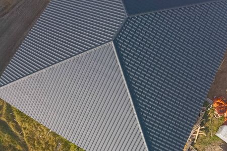 Modern roof made of metal. Corrugated metal roof and metal roofing.