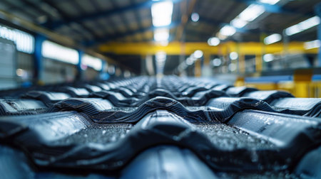 Factory Assembly Line Showcasing Roof Tiles Being Produced With Meticulous Detail and Precision in a Modern Manufacturing Facility. Generative AI