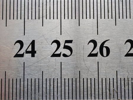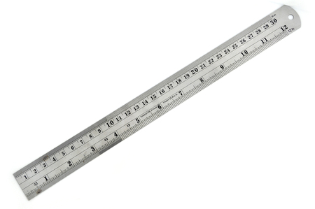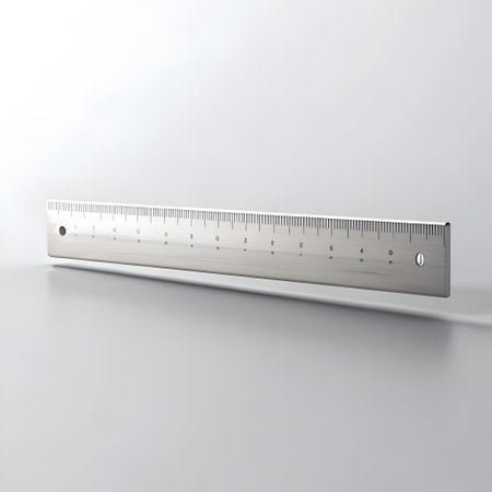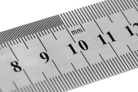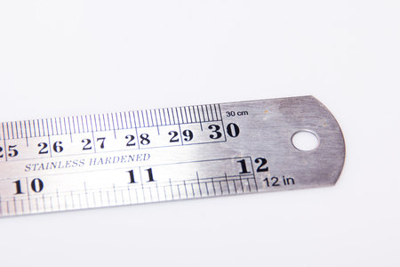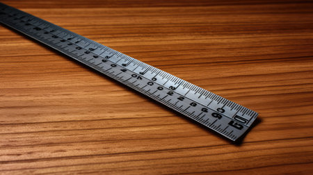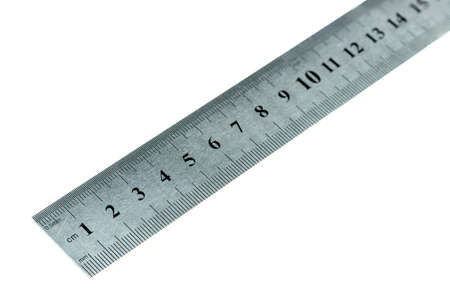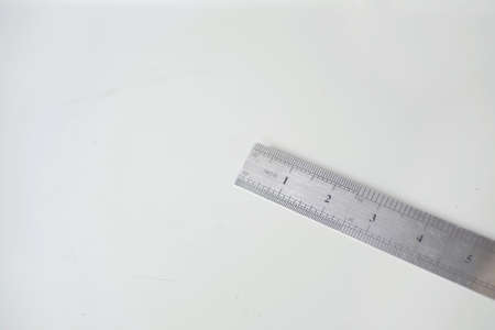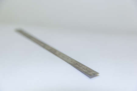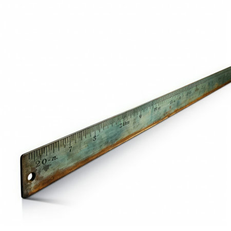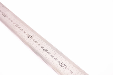 This close-up image features a metal ruler on a white background, showcasing detailed measurement markings essential for precision in various applications like drafting and engineering.