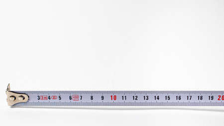 Measuring tape with numbers centimeters on a white background. Construction tools.