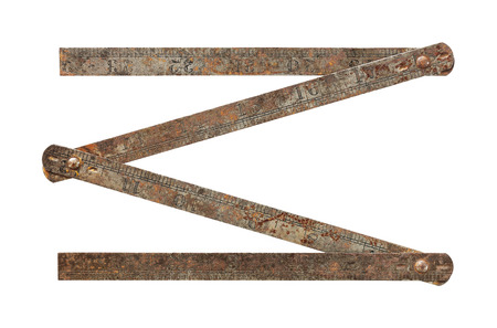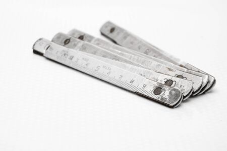 Macro view of old and worn measuring instrument units in inches centimeter milimeter