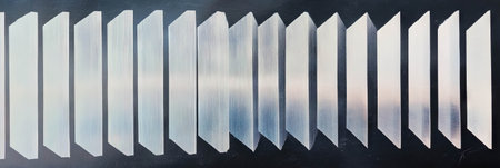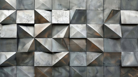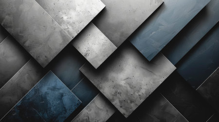 Panels in various shades of gray are arranged diagonally on a flat surface. The textures create an interesting visual effect, emphasizing depth and dimension.