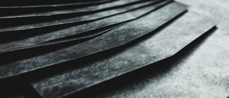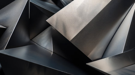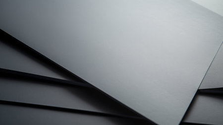 This stock image showcases an abstract arrangement of dark textured panels and sheets, perfect for modern design projects, backgrounds, or artistic concepts.