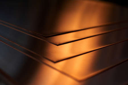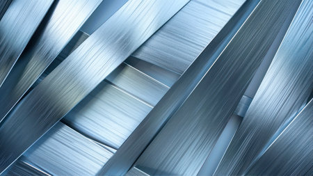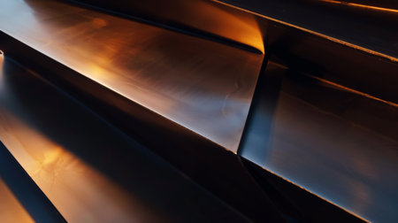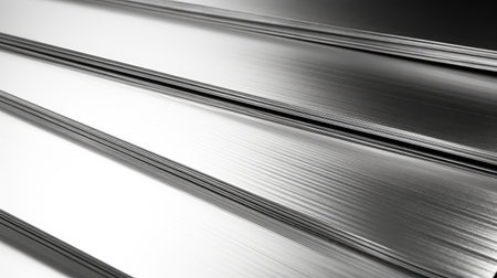 This close-up image showcases a neat stack of metallic profiles with a sleek, reflective surface. The lines and geometric shapes create a modern aesthetic perfect for industrial themes.
