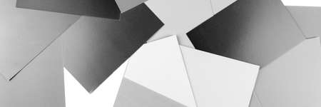 Panoramic background of black and white paper sheets. Many sheets of black and white paper