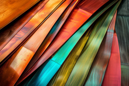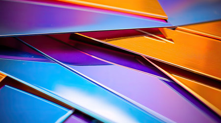 Array of Thin Multicolored Metal Sheets with Reflective Surfaces.