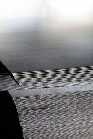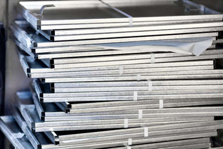 Galvanized sheets are stacked in a stack. Industrial background. Close-up