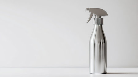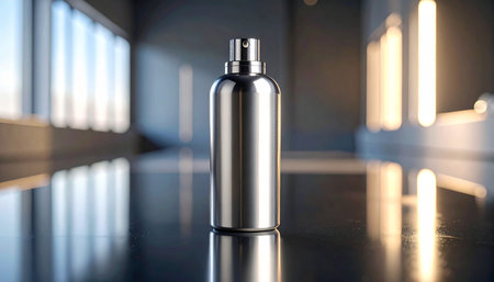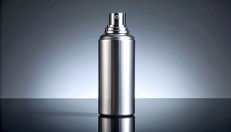Sleek and modern air freshener spray with a shiny metallic finish, standing against a pure white background