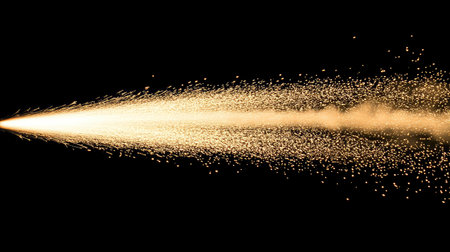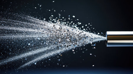 Black spray gun spraying a cloud of shimmering particles