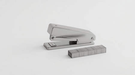 3d rendering of metal stapler in white background with shadow