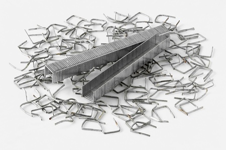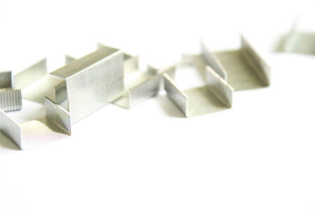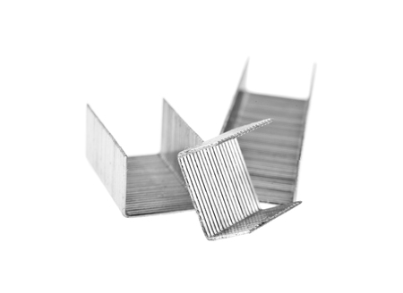 close up of staples isolated on a white background
