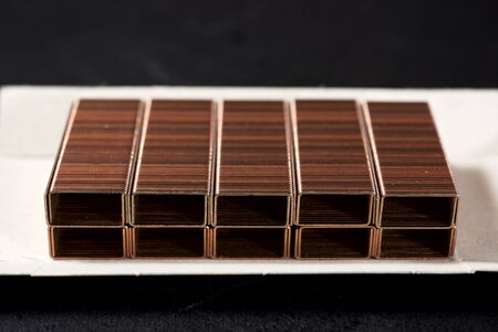bar of staples arranged on staples background
