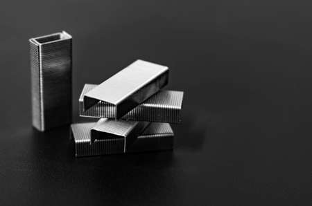 Pile of staples on desk in monochrome