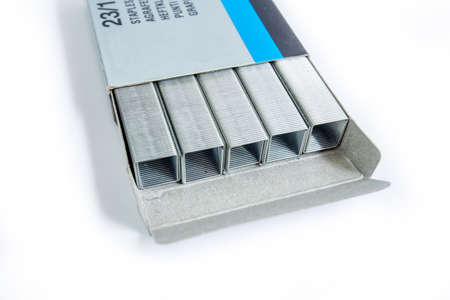 Metal staples for stapler, on isolate with white background. Close-up.