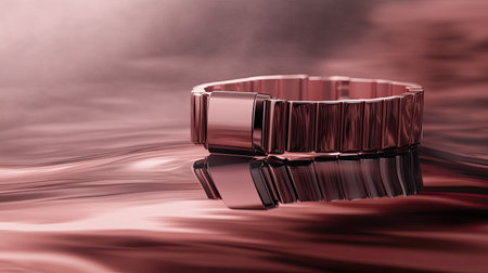 This stunning rose gold bracelet elegantly rests on a soft abstract background, showcasing its beautiful reflections and luxurious textures. Perfect for fashion enthusiasts.