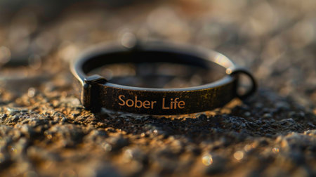 Close-up of a poignant 'Sober Life' bracelet lying on a textured surface, symbolizing the commitment to sobriety and a clean lifestyle
