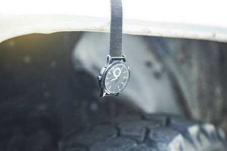 man worker watch on the car background