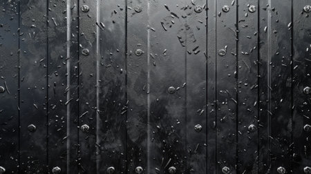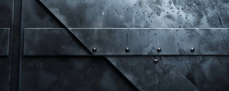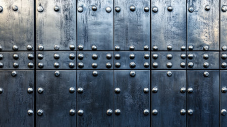 A close-up view of a textured metal panel decorated with rivets, offering a sleek industrial aesthetic ideal for backgrounds in design projects.