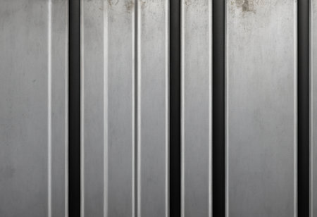Close-up of a metal sheet texture with rivets and a brushed steel finish, creating an industrial, modern look.
