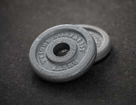 Dumbbell weight plates on a fitness studio / weight training gym floor