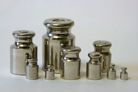 Weights for weighing close up on a white background
