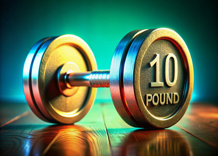 Ten pound weights on a blue background