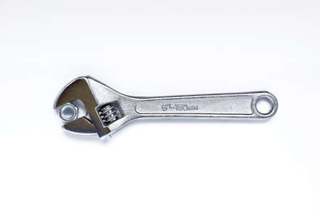 Adjustable wrench isolated on a white background. Close-up.