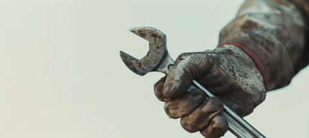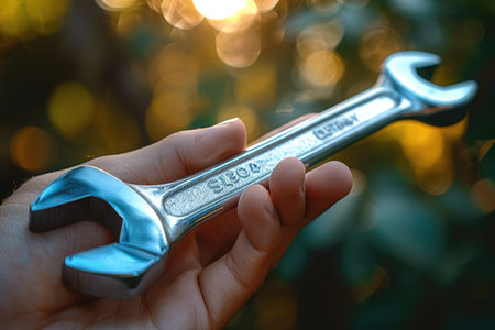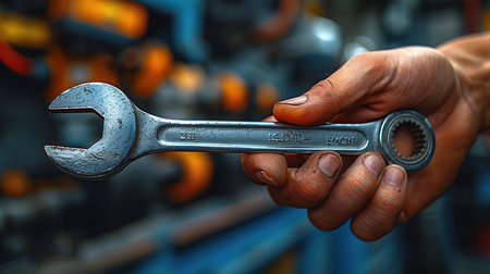 A Man's Hand Holding Wrench. Created with Generative AI