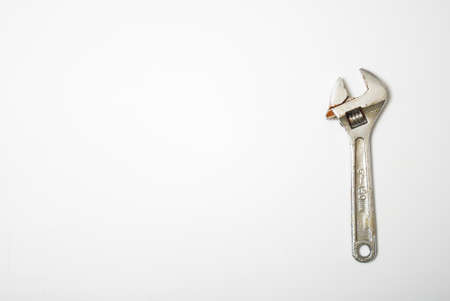 Adjustable spanner tool. Isolated white background and copy space