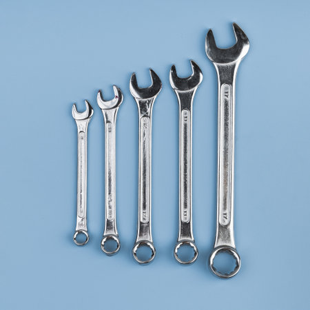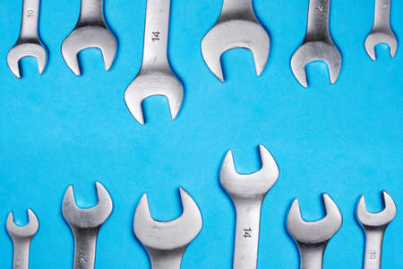 Set of wrenches on a blue background