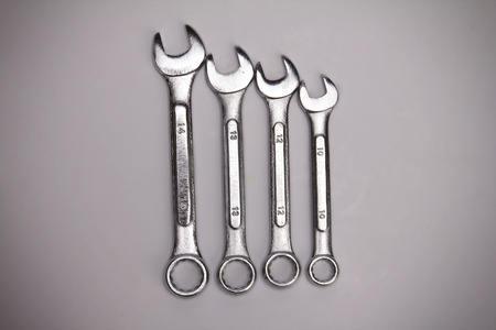 Spanners on a white background. Close-up. Selective focus.