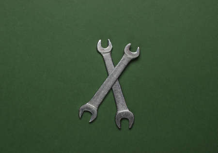Wrench on a green background. Top view