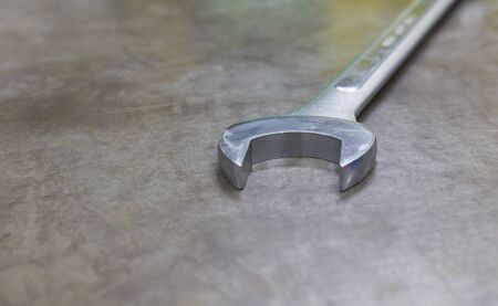 Combination wrench on the metal background