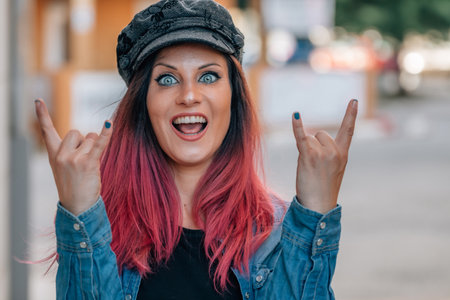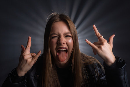 Excited Young Woman Expressing Rock and Roll Spirit