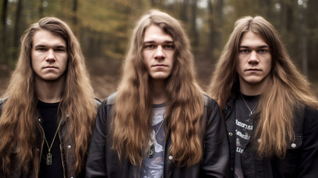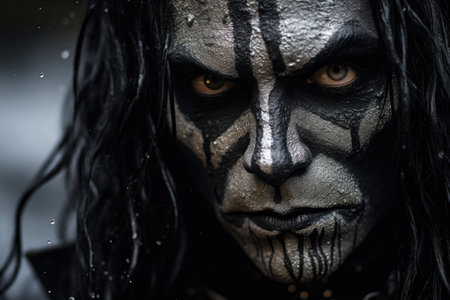 Portrait of a man, black metal metalhead in makeup with long hair