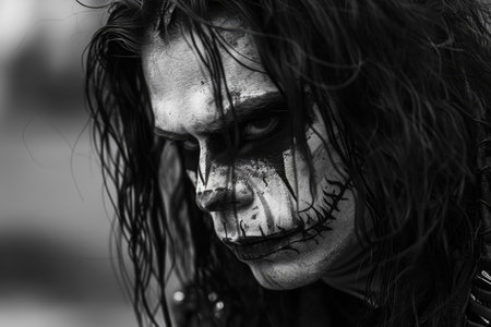 Man metalhead with sinister makeup